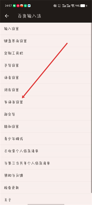 3、在設(shè)置頁面,點(diǎn)擊多語言設(shè)置選項(xiàng)。