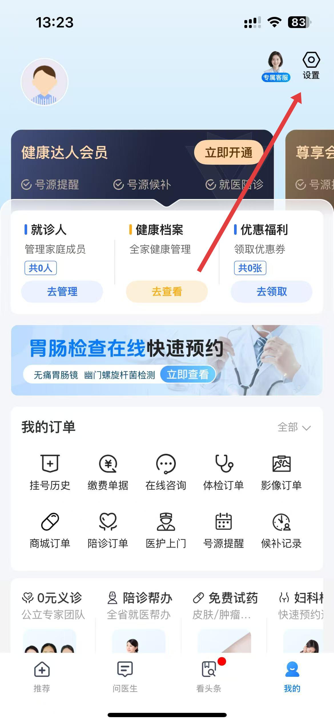 2、在個人中心頁面,點擊右上角設(shè)置圖標,進入設(shè)置界面。