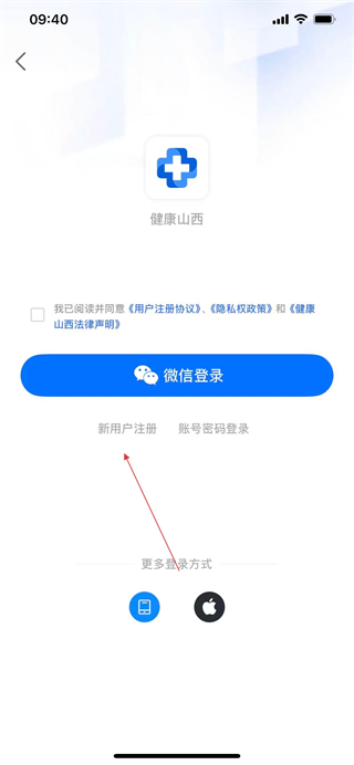 2、在登錄頁面點擊新用戶注冊,進入手機號注冊頁面。