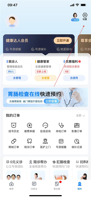 1、在健康山西App首頁點擊底部的我的,進入個人中心頁面。