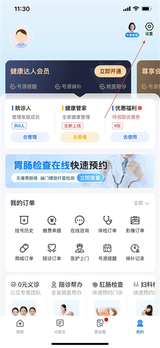 2、在我的頁面中,點擊右上角的設(shè)置圖標,進入設(shè)置界面。