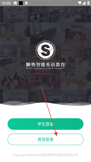 1、打開順勢(shì)智能英語APP,在初始界面點(diǎn)擊其他登錄選項(xiàng)。