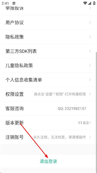 3、在設(shè)置頁面,找到并點(diǎn)擊下方退出登錄按鈕。