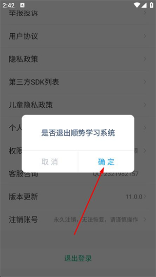 4、在彈出的提示框中,點(diǎn)擊確定即可退出賬號(hào)。