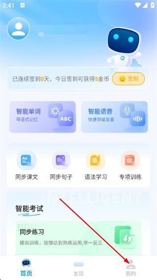 1、打開順勢(shì)智能英語,點(diǎn)擊底部導(dǎo)航欄我的。