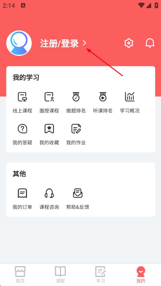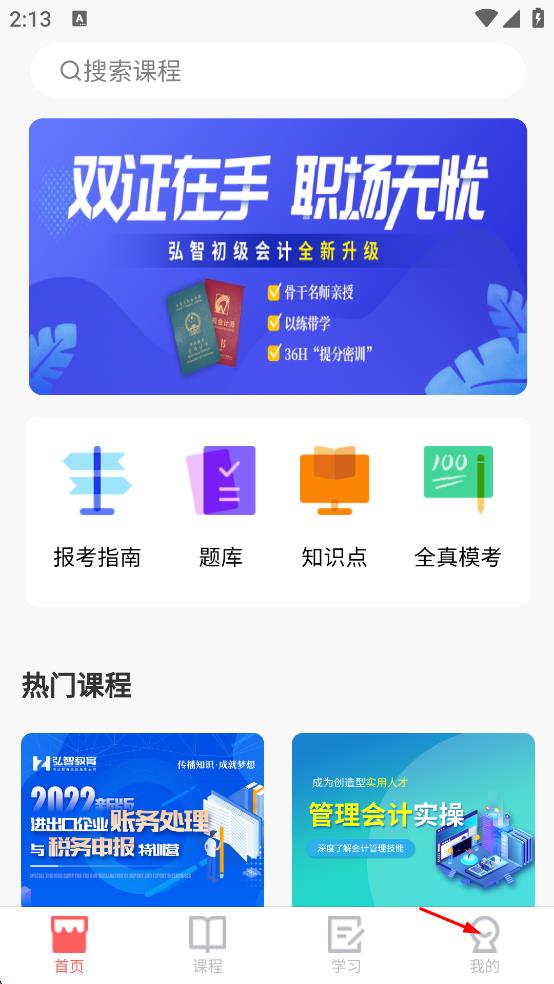 1、打開弘智課堂應(yīng)用,在首頁點擊右下角我的選項,進(jìn)入個人中心頁面。