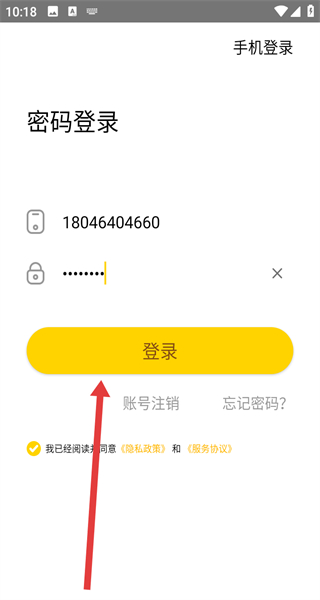 3、在密碼登錄模式下,點(diǎn)擊輸入手機(jī)號(hào)和密碼后,勾選我已經(jīng)閱讀并同意按鈕進(jìn)行登錄。