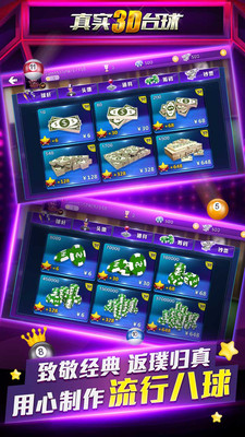 《真實(shí)3D臺(tái)球》是一款經(jīng)典8球加上全新的游戲模式融合而成的擬真桌球游戲,從街頭比賽開(kāi)始參加挑戰(zhàn)賽,不斷成長(zhǎng),解鎖挑戰(zhàn)賽,成為最終贏家。3D臺(tái)球?qū)?zhàn)百分百還原模擬了現(xiàn)實(shí)臺(tái)球的玩法和場(chǎng)景,你可以和全世界的玩家比拼技藝,也可以和你身邊的好友來(lái)上一局,擂臺(tái)賽、VIP、世界榜單、酷炫有型的球桿盡在游戲展現(xiàn)。