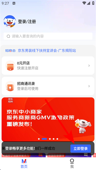 1、打開京麥APP,點(diǎn)擊立即登錄,我們進(jìn)入登錄選擇頁面。