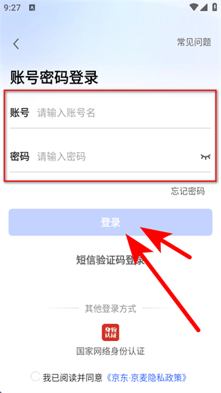 3、在賬號(hào)密碼登錄頁面,輸入賬號(hào)和密碼后,點(diǎn)擊登錄完成操作。