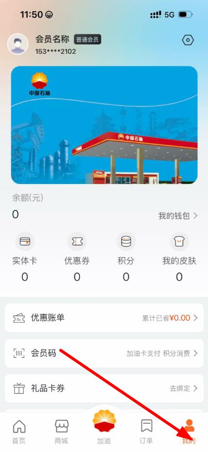 1、打開中油好客e站APP,進入首頁后,點擊底部導航欄最右側(cè)的我的選項,進入個人中心頁面。