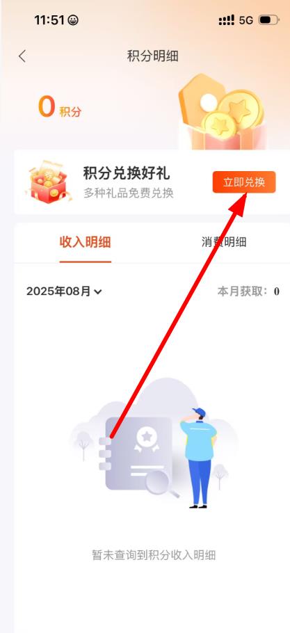 3、在積分明細界面里,點擊積分兌換好禮右側(cè)的立即兌換按鈕,進入可兌換商品頁面。