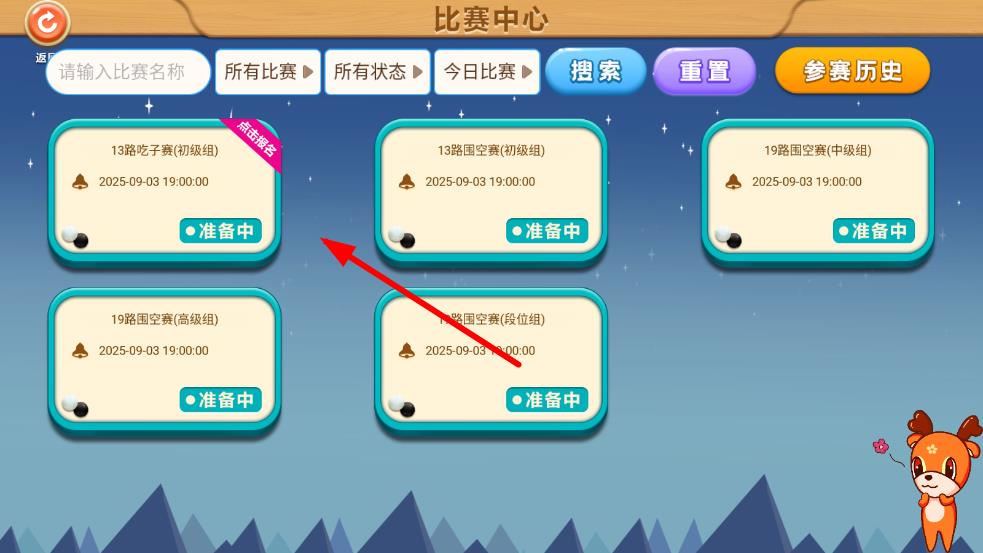 2、進入比賽中心頁面后,瀏覽展示的各類比賽項目,找到你想要報名的比賽。