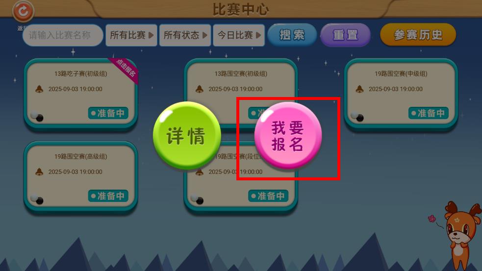 3、點擊想要報名的比賽,在彈出的操作選項中,點擊我要報名按鈕,即可完成該比賽的報名操作,按照比賽時間準(zhǔn)時參賽即可。