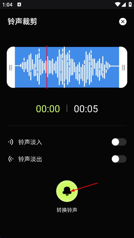 3、完成裁剪設(shè)置,點(diǎn)擊“轉(zhuǎn)換鈴聲”,等待軟件處理,生成自定義鈴聲,可保存至“我的鈴聲”使用。