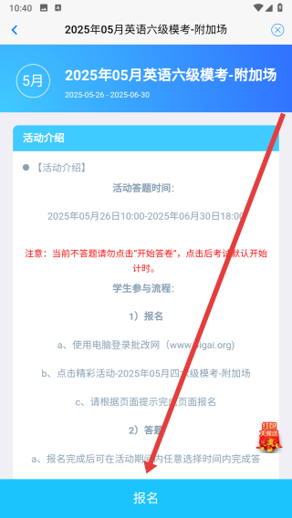 4、在進(jìn)入到活動詳情頁面中,可以仔細(xì)閱讀活動介紹后點(diǎn)擊報(bào)名按鈕,進(jìn)行報(bào)名。