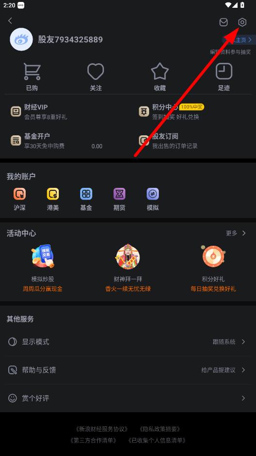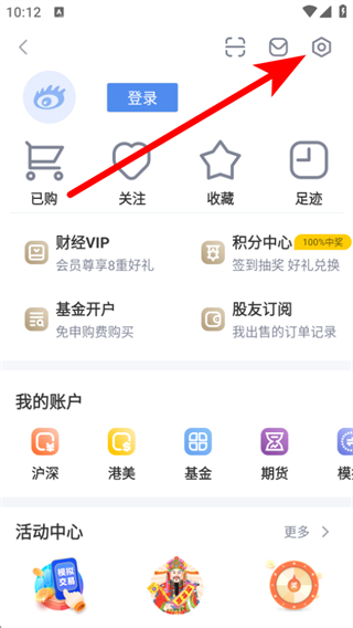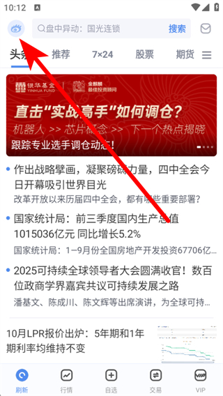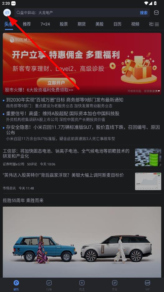 1、打開(kāi)新浪財(cái)經(jīng)app,點(diǎn)擊左上角的個(gè)人頭像圖標(biāo)。