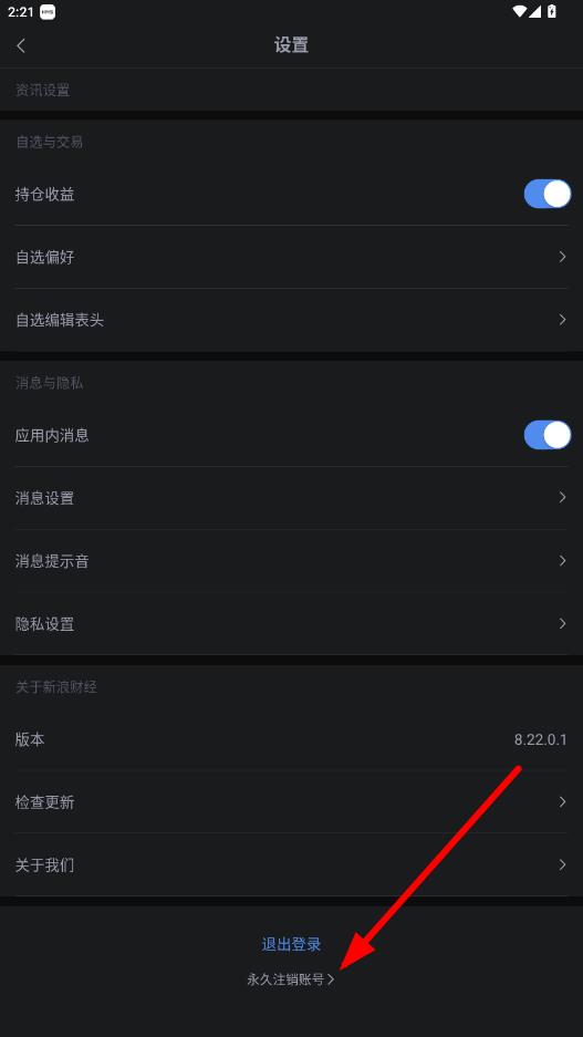 3、在設(shè)置頁(yè)面中,滑動(dòng)到下方找到并點(diǎn)擊永久注銷賬號(hào)選項(xiàng)。