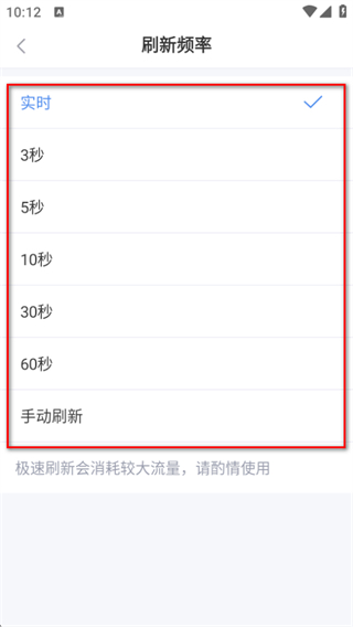 4、在刷新頻率頁(yè)面,可選擇不同刷新時(shí)間選項(xiàng),根據(jù)需求選擇完成設(shè)置。