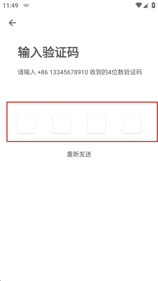4、在輸入驗(yàn)證碼頁(yè)面,填寫(xiě)收到的4位數(shù)驗(yàn)證碼,完成賬號(hào)注冊(cè)的驗(yàn)證操作。