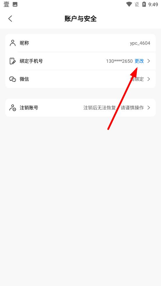 3、在賬戶與安全頁面里點擊綁定手機號右側的更改選項,按照后續(xù)提示完成身份驗證等操作即可成功更換手機號。