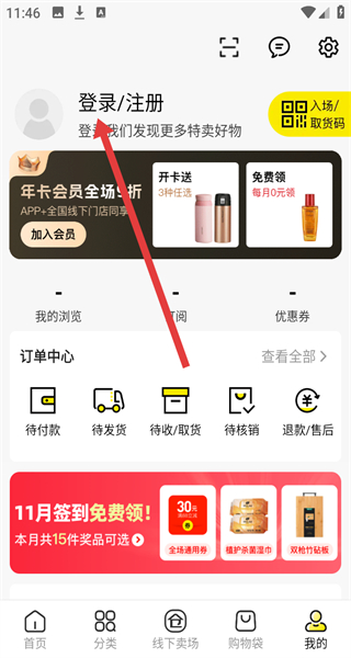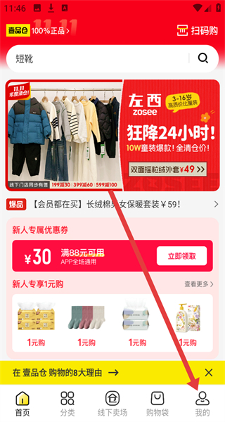 1、壹品倉APP首頁點擊右下角“我的”,進入個人中心頁面。