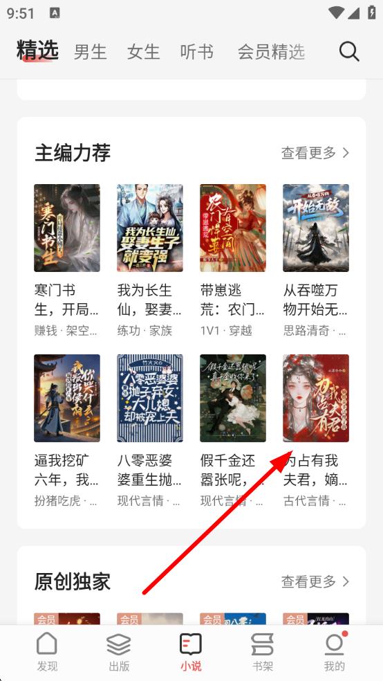 1、打開掌閱APP,在小說界面的主編力薦中選擇要分享的書籍。