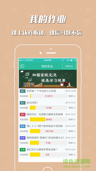 老師通過使用圖片、文字等,把孩子在校學(xué)習(xí)情況、日常表現(xiàn)、作業(yè)和成績、集體活動等信息發(fā)給家長。