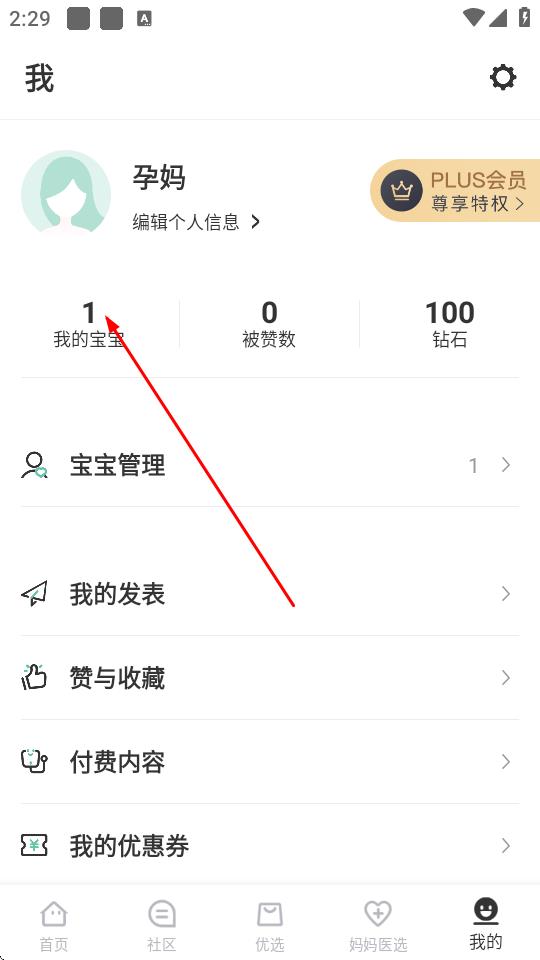 2、在我的頁面中,點(diǎn)擊我的寶寶選項(xiàng)。