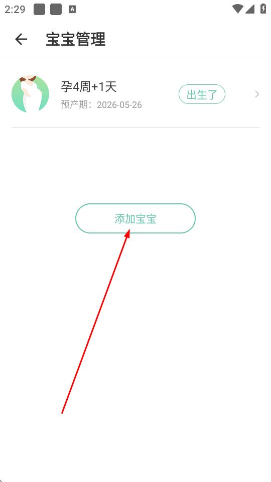 3、進(jìn)入寶寶管理頁面后,點(diǎn)擊添加寶寶按鈕。