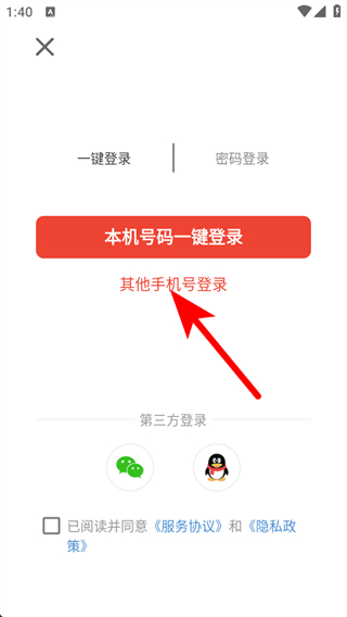 3、在登錄選擇界面,點(diǎn)擊其他手機(jī)號(hào)登錄,進(jìn)入短信登錄頁(yè)面。