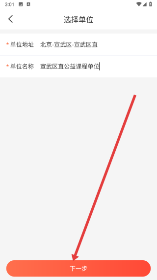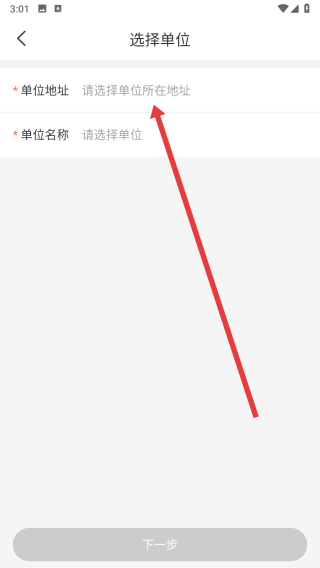 2、在進(jìn)入到選擇單位頁(yè)面中,點(diǎn)擊輸入框依次填寫單位地址和名稱。