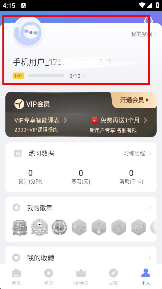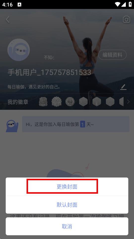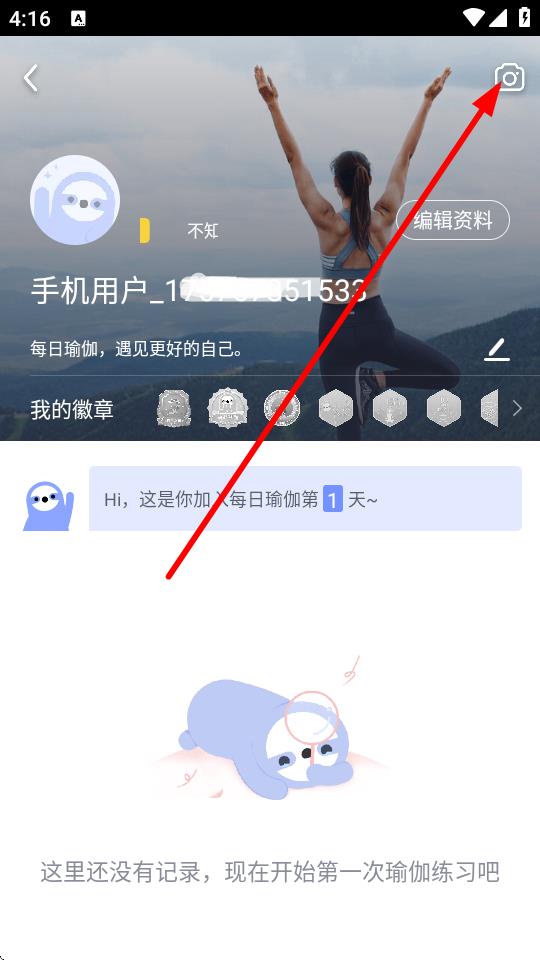 1、打開每日瑜伽APP,在個人頁面中點擊頂部帶有頭像和昵稱的區(qū)域,進入個人資料展示頁面。