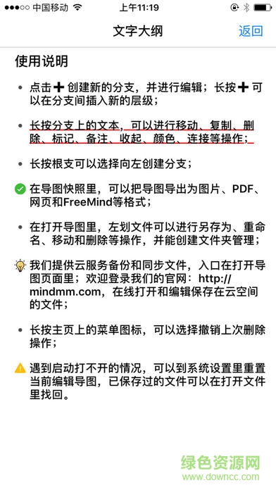 3.點(diǎn)擊分支上的+號(hào),即可向左右兩邊擴(kuò)展分支,長(zhǎng)按分支上的文本會(huì)彈出功能菜單,可以進(jìn)行復(fù)制、剪切、刪除、備注和標(biāo)記等操作。