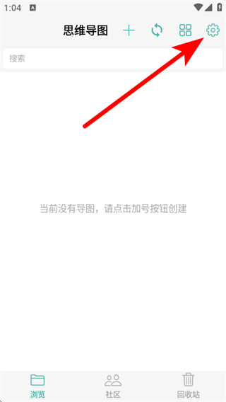 1、打開思維導(dǎo)圖應(yīng)用,點(diǎn)擊右上角的設(shè)置圖標(biāo),進(jìn)入設(shè)置頁(yè)面。