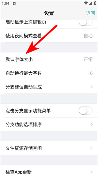 2、在設(shè)置的頁(yè)面中,我們需要點(diǎn)擊默認(rèn)字體大小的選項(xiàng)。