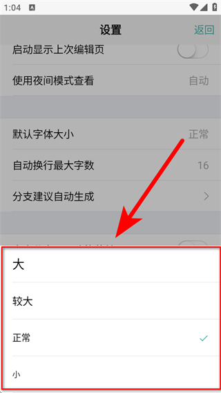 3、在彈出列表中,選擇大、較大、正?;蛐?,完成字體大小的設(shè)置操作。