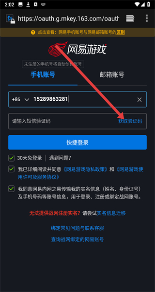 3、在登錄界面輸入手機(jī)號(hào)碼,點(diǎn)擊“獲取驗(yàn)證碼”。