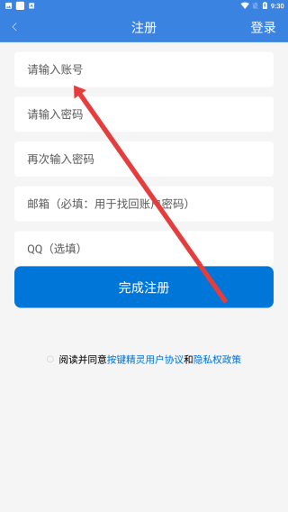 3、注冊頁面里,在最上方標(biāo)注請輸入賬號的輸入框中,需要填寫用于注冊的賬號內(nèi)容。