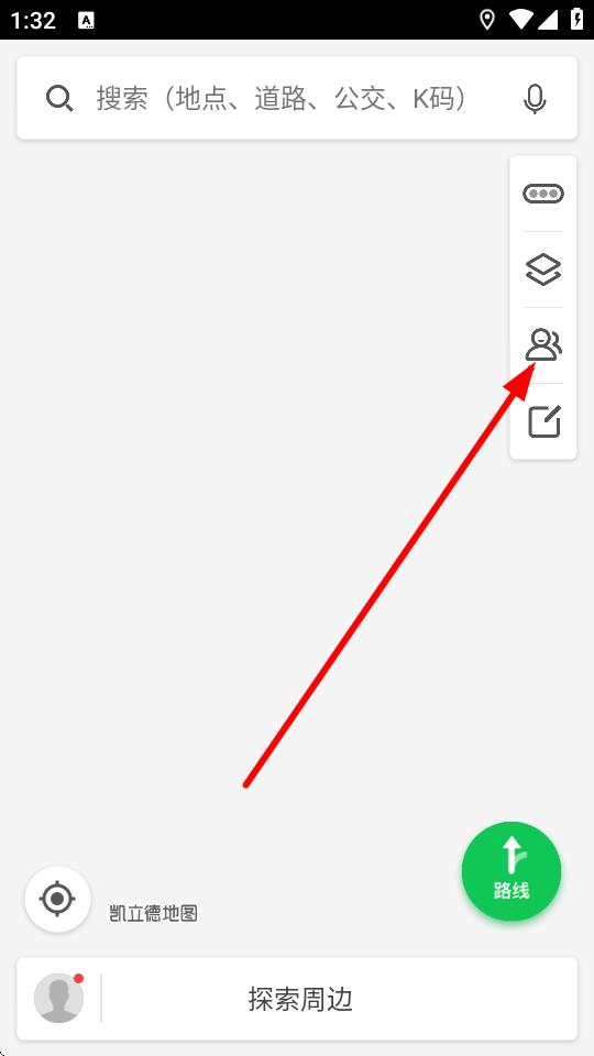1、打開凱立德導(dǎo)航應(yīng)用進(jìn)入主界面,點(diǎn)擊界面右側(cè)人像圖標(biāo)進(jìn)入我的好友界面。