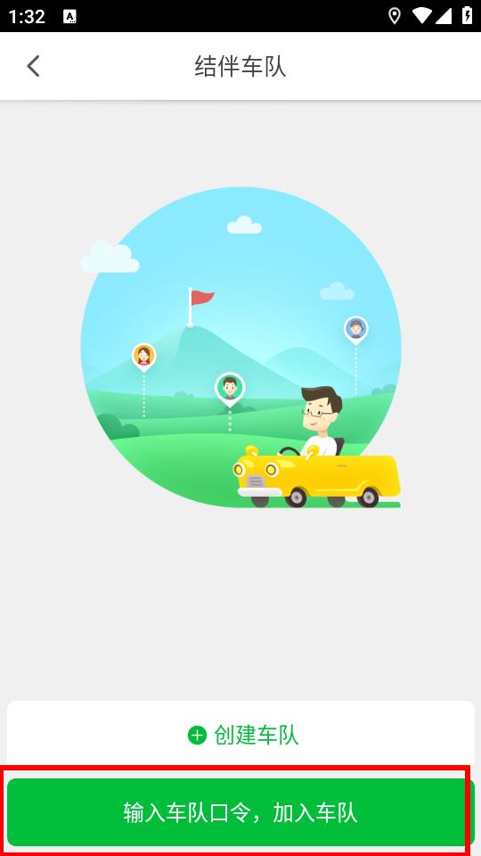 3、進(jìn)入結(jié)伴車隊(duì)界面后,點(diǎn)擊下方輸入車隊(duì)口令,加入車隊(duì)按鈕。