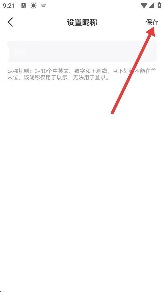 4、輸入新昵稱,點(diǎn)擊右上角保存按鈕,完成昵稱更改。