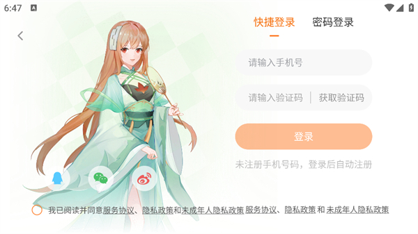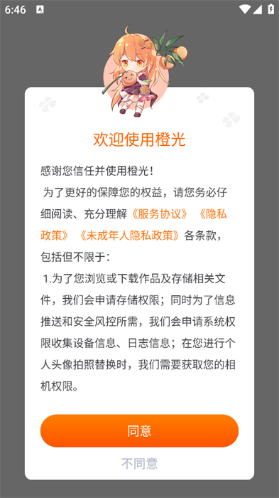 1、打開游戲之后閱讀隱私政策和用戶協(xié)議,點(diǎn)擊同意之后就能進(jìn)入到軟件;
