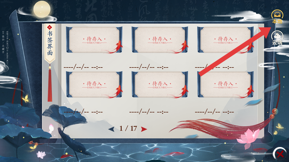 3、在書簽界面中,需要點(diǎn)擊右上角的本地按鈕,即可將當(dāng)前游戲進(jìn)度存檔至本地。