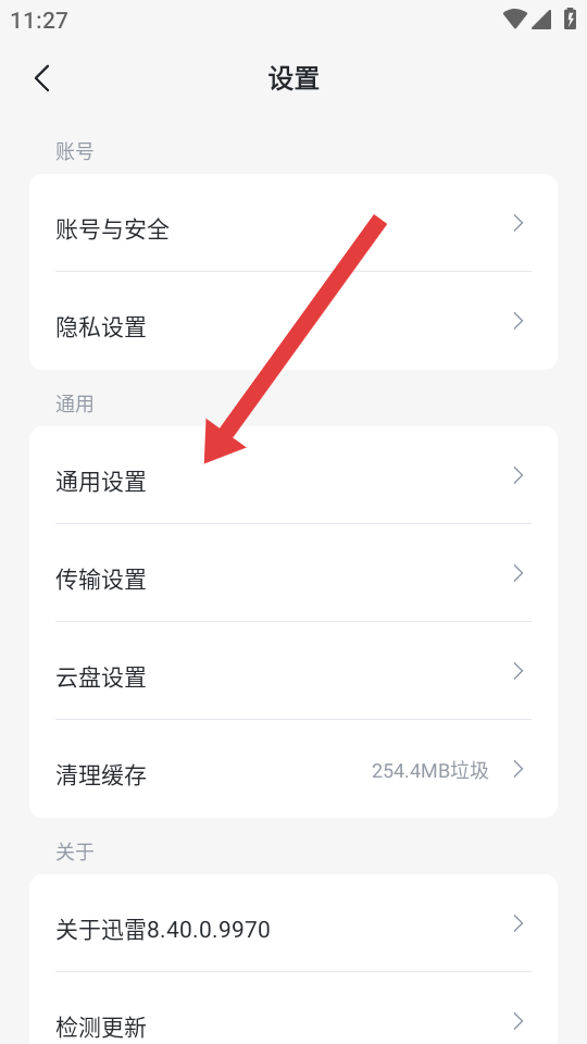 1、打開(kāi)迅雷APP,需要進(jìn)入設(shè)置的頁(yè)面,點(diǎn)擊通用設(shè)置的選項(xiàng),進(jìn)入通用設(shè)置的界面。