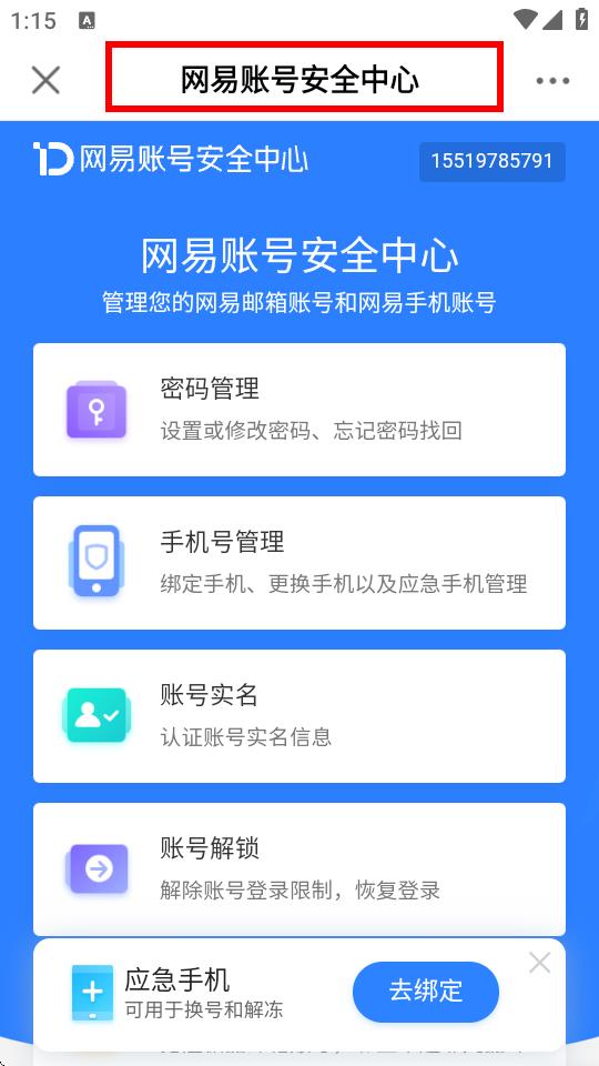 4、認(rèn)證成功后若想查看或管理賬號(hào)安全相關(guān)內(nèi)容,可點(diǎn)擊進(jìn)入安全中心進(jìn)入網(wǎng)易賬號(hào)安全中心進(jìn)行操作。