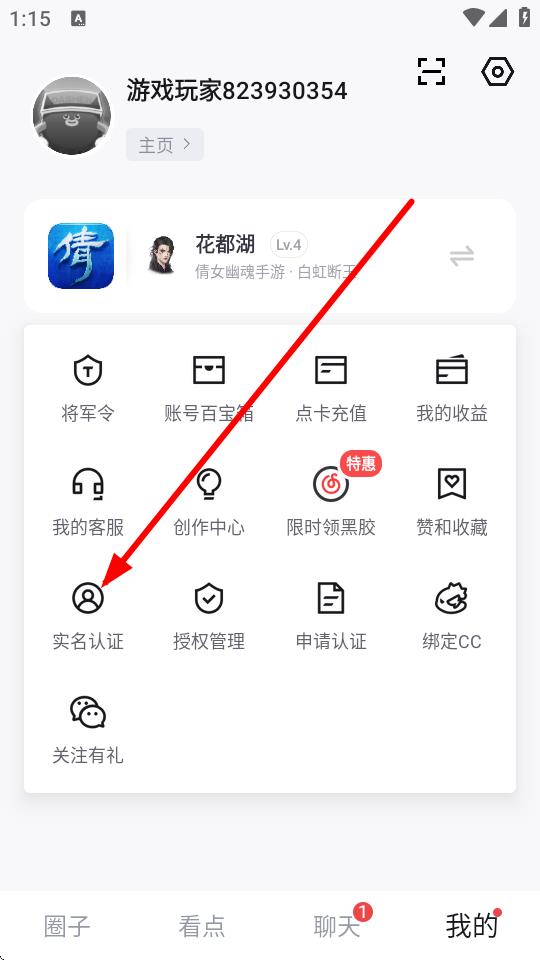 2、在個(gè)人中心頁(yè)面里,找到實(shí)名認(rèn)證選項(xiàng)并點(diǎn)擊進(jìn)入。