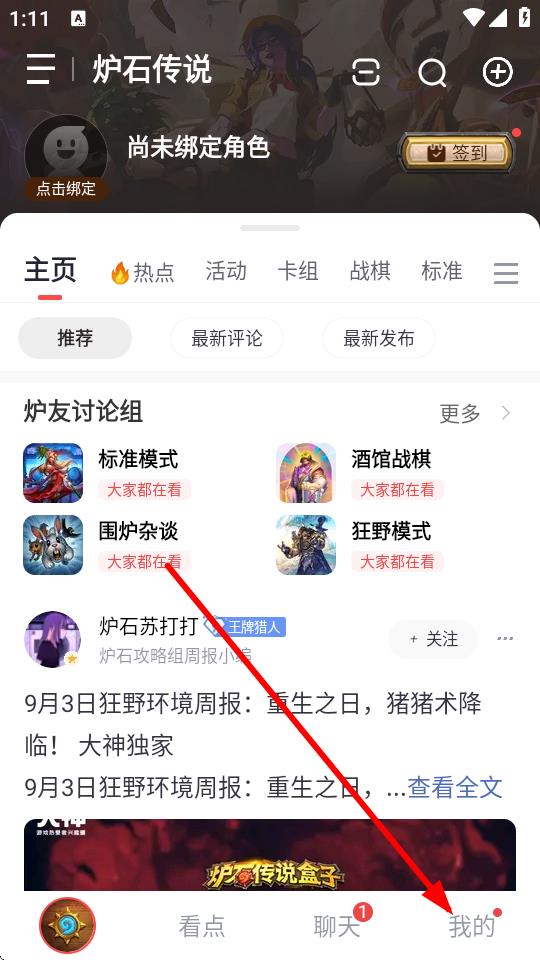 1、打開爐石盒子APP進(jìn)入主頁,點(diǎn)擊底部導(dǎo)航欄中我的選項(xiàng)進(jìn)入個(gè)人中心頁面。