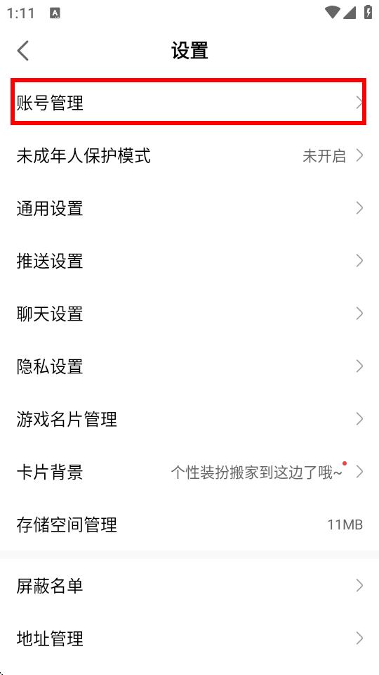 3、在設(shè)置界面里,找到并點(diǎn)擊賬號(hào)管理選項(xiàng)。