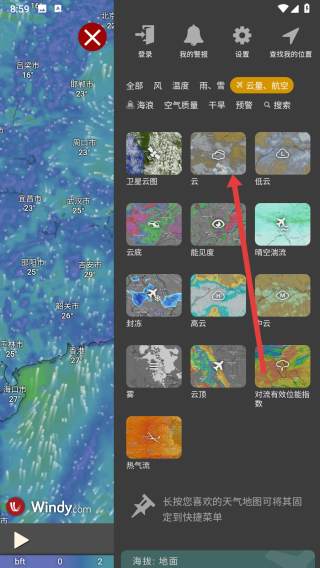 3、可以在云量相關(guān)的圖層中,選擇點(diǎn)擊云圖層使用。